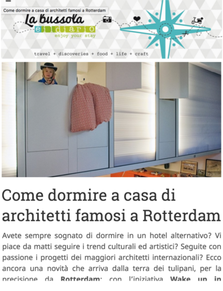 - Wake up in it, a creative project which enables visitors attending some of Rotterdam’s many festivals to stay in thematically appropriate accommodation - to literally wake up in the festival -